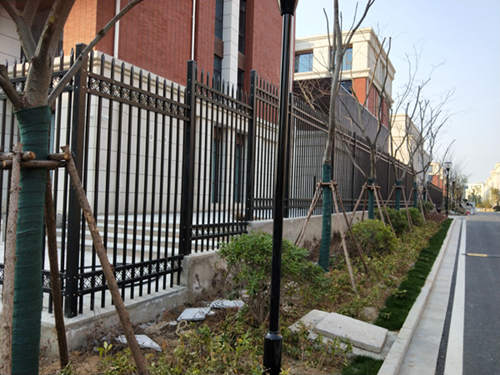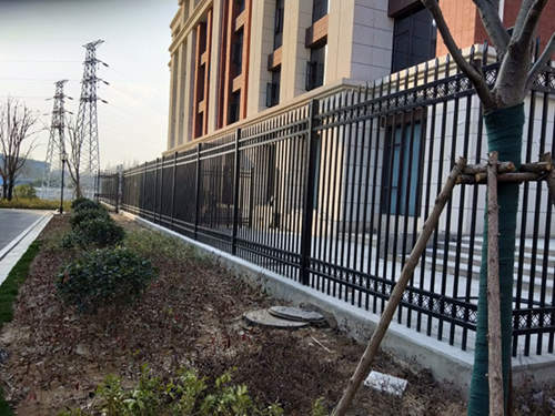黑色四橫桿加裝飾圓環(huán)鋅鋼護(hù)欄網(wǎng)價(jià)格安裝完成